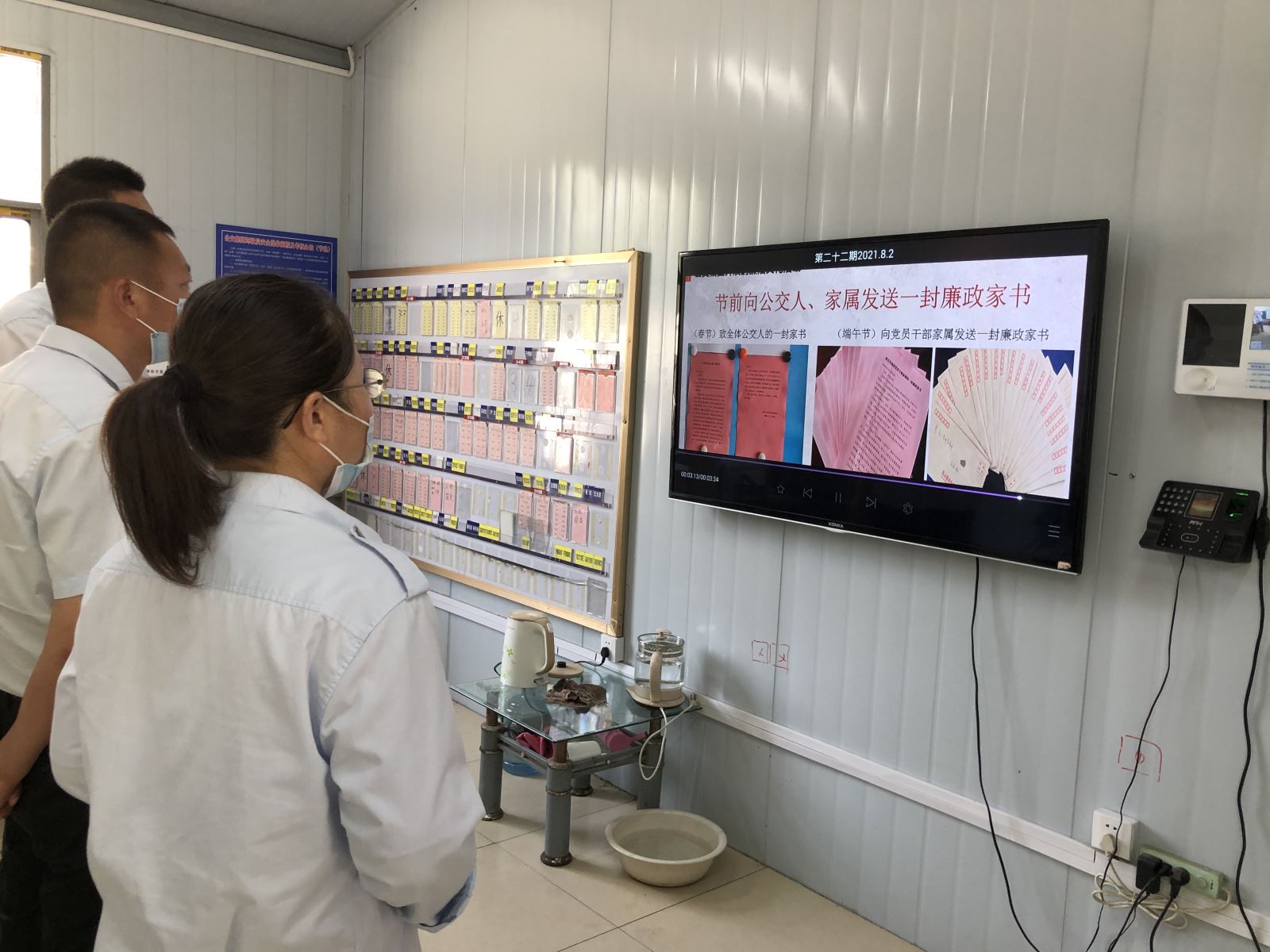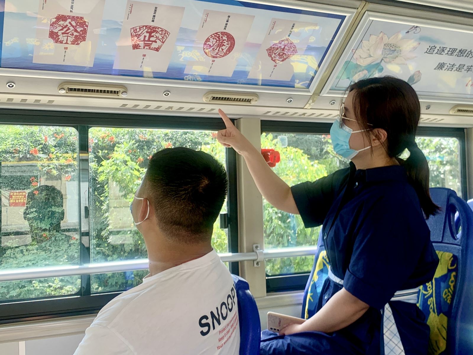 集團通過在各個公交停保場、站臺、公交車廂開辟廉潔文化電子宣傳專欄,征集格言警句、定期制作漫畫說紀專題片、本地歷史清官人物簡介等形式將廉潔文化進一步延伸至全市700余臺公交車載電子屏、82個BRT站臺屏以及11個大型停保場宣傳屏,以沉浸式體驗的方式打造職工、群眾喜聞樂見的具有行業(yè)鮮明特色的廉潔文化精品,推動廉潔文化融入日常工作、生活的各個環(huán)節(jié),切實發(fā)揮了公交集團作為市級廉政文化建設示范點的引領、輻射和帶動作用,打造了流動的廉潔文化教育課堂。