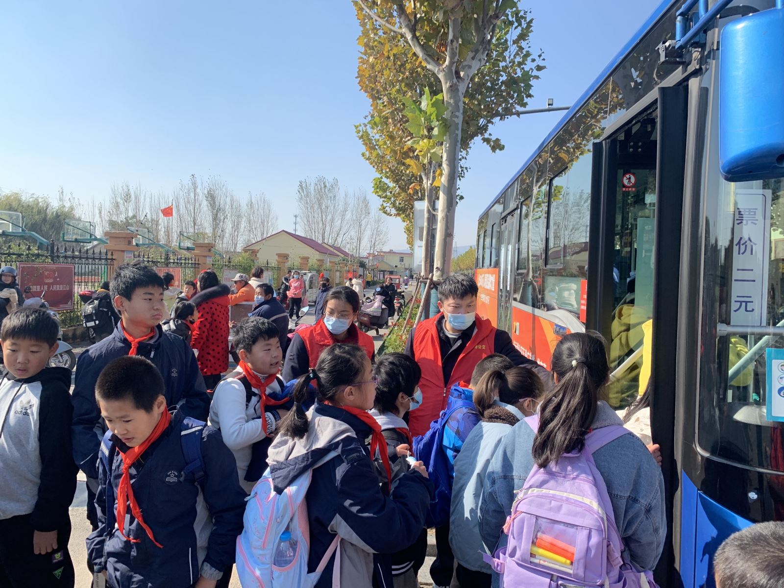 二是來到板橋社區,清掃樹葉、拾撿煙頭,為社區干凈整潔的環境奉獻一份力量。三是來到板橋小學,疏導板橋定制公交班線小學生安全上下車,為忘記佩戴口罩的孩子免費提供口罩,教育他們正確佩戴口罩,做好防疫,保護自己,受到了師生們的好評。