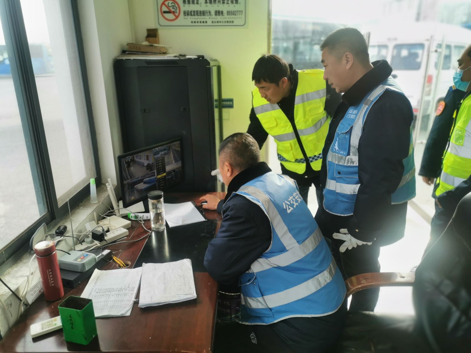 檢查組人員針對各場站安全設施、監控設備、辦公室用電、停車棚、車輛等展開全面的安全隱患自查自糾,做到安全隱患零容忍、無禁區、全覆蓋,并對各場站的門衛進行安全交代,要求嚴格落實《外來人員登記》程序,對外來車輛、人員做好體溫檢測、兩碼查驗,發現問題立即上報。