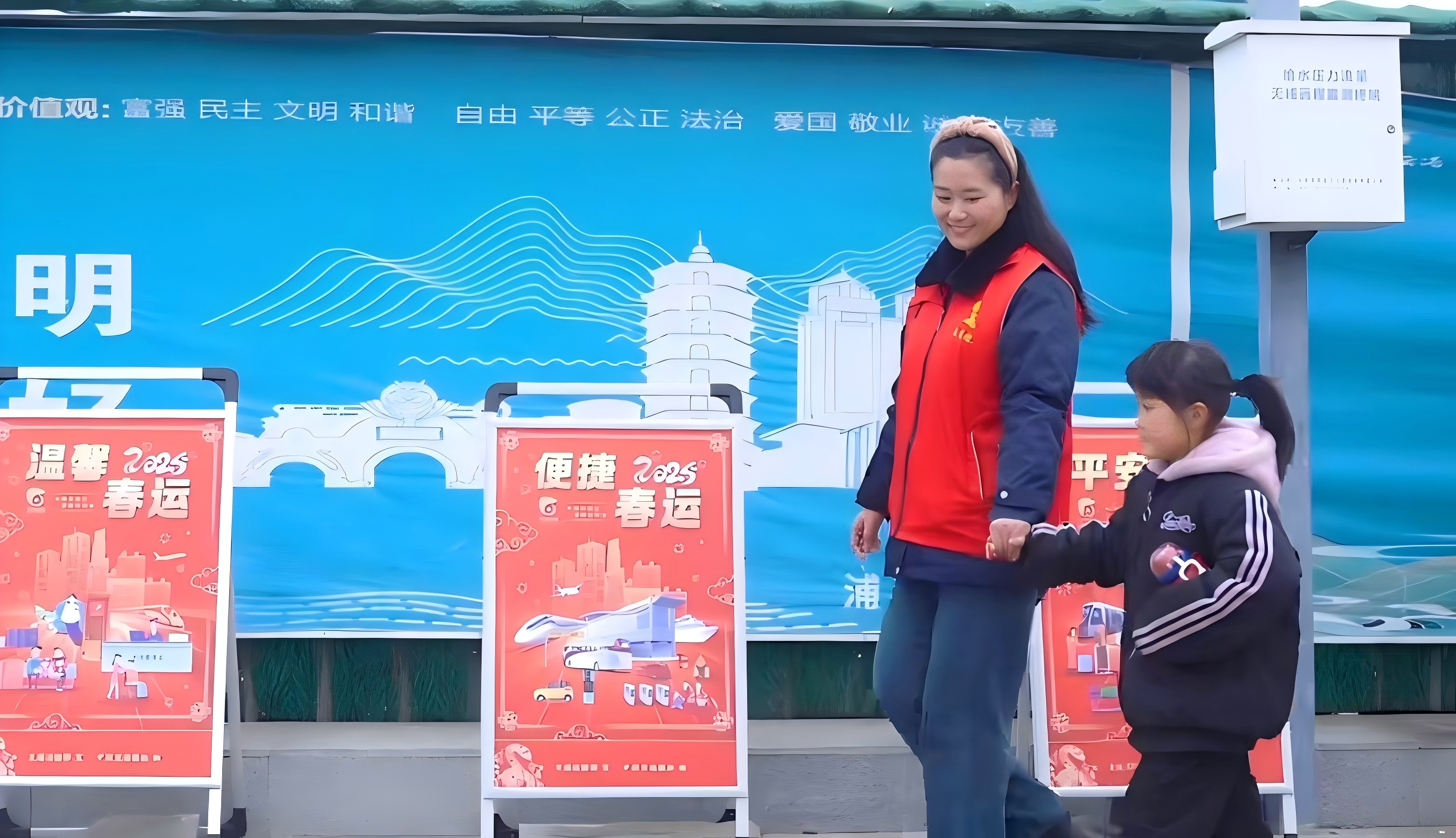 2月7日,連云港經歷了一場大幅度的降溫,氣溫驟降至零下8度、西北風5級。在如此嚴寒的天氣中,為保障春運期間高鐵站乘客的順利出行,連云港市公交集團的志愿者們不畏嚴寒,堅守在高鐵公交站臺。他們身穿的紅色馬甲在寒風中格外醒目,猶如一團團跳動的火焰,為冬日增添了幾分暖意。