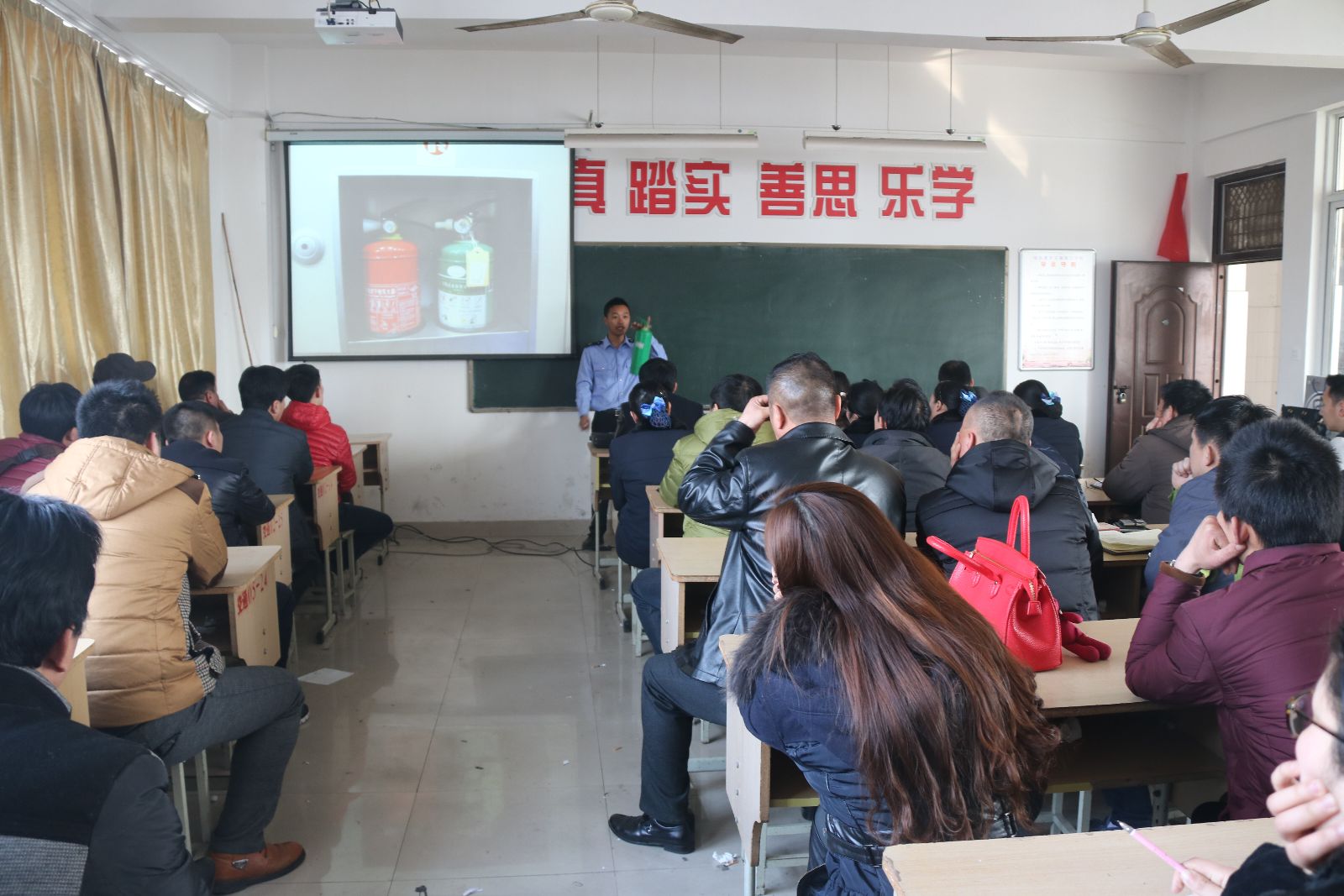 培訓中,趙教官針對公司實際情況,結合當前消防形勢,給大家播放了全國近年來公交車火災事故的視頻圖片,用真實案例讓大家認識到消防安全的重要性,同時,對公交車如何防自燃、發生火災如何自救、火災應急疏散逃生等進行了詳細地講解,參培人員認真記錄,并與教官互動,為了檢驗培訓的效果,還進行了現場筆試。