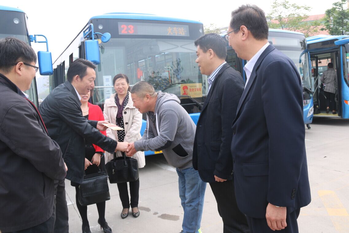 4月28日,在“五一”國際勞動節來臨前夕,市交通控股集團黨委書記、董事長劉永能、工會主席王中永、副主席張曉紅、辦公室主任曹素玲等一行領導深入海通公交一線,看望慰問了海通公交新浦公司23路“敬老文明線”駕駛員,并送來慰問金。海通公交總經理劉佃華、工會主席吉錦梅、新浦公司等相關人員參加了慰問。