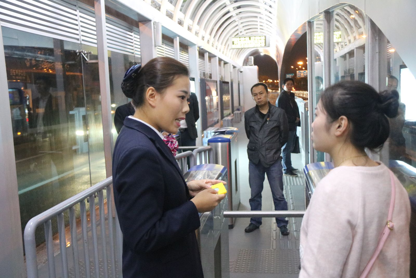 來(lái)源:快速公司 作者:周健 10月21日,在公交集團(tuán)的籌備和組織下,公交快速公司站務(wù)員服務(wù)技能競(jìng)賽活動(dòng)圓滿結(jié)束。本次技能競(jìng)賽分為理論考試和現(xiàn)場(chǎng)技能考核兩個(gè)部分。20名優(yōu)秀站務(wù)員被選拔出來(lái)參加決賽,決賽在郁海廣場(chǎng)上行站和下行站兩個(gè)考點(diǎn)進(jìn)行,分為禮儀服務(wù)、售票操作、應(yīng)急處理、安全檢查等環(huán)節(jié)評(píng)比,并對(duì)站務(wù)員進(jìn)行綜合打分。 本次競(jìng)賽,反映出站務(wù)員熱情微笑服務(wù)、售票技能熟練、能夠積極查堵危險(xiǎn)品、應(yīng)急處理得當(dāng)。同時(shí)站務(wù)員們也查找出了服務(wù)中的薄弱環(huán)節(jié),明確了今后工作努力的方向。本次競(jìng)賽不僅是對(duì)一線員工崗位上的練兵,更是公交打造服務(wù)品牌的一次嘗試。服務(wù)競(jìng)賽活動(dòng)在站務(wù)員隊(duì)伍中引起了積極反響,掀起“比學(xué)趕超”的工作氛圍,站務(wù)員們紛紛表示此次競(jìng)賽激發(fā)了大家的學(xué)習(xí)熱情、工作干勁,今后要立足崗位多做貢獻(xiàn),完成好各項(xiàng)工作任務(wù),為企業(yè)發(fā)展貢獻(xiàn)自己的力量。