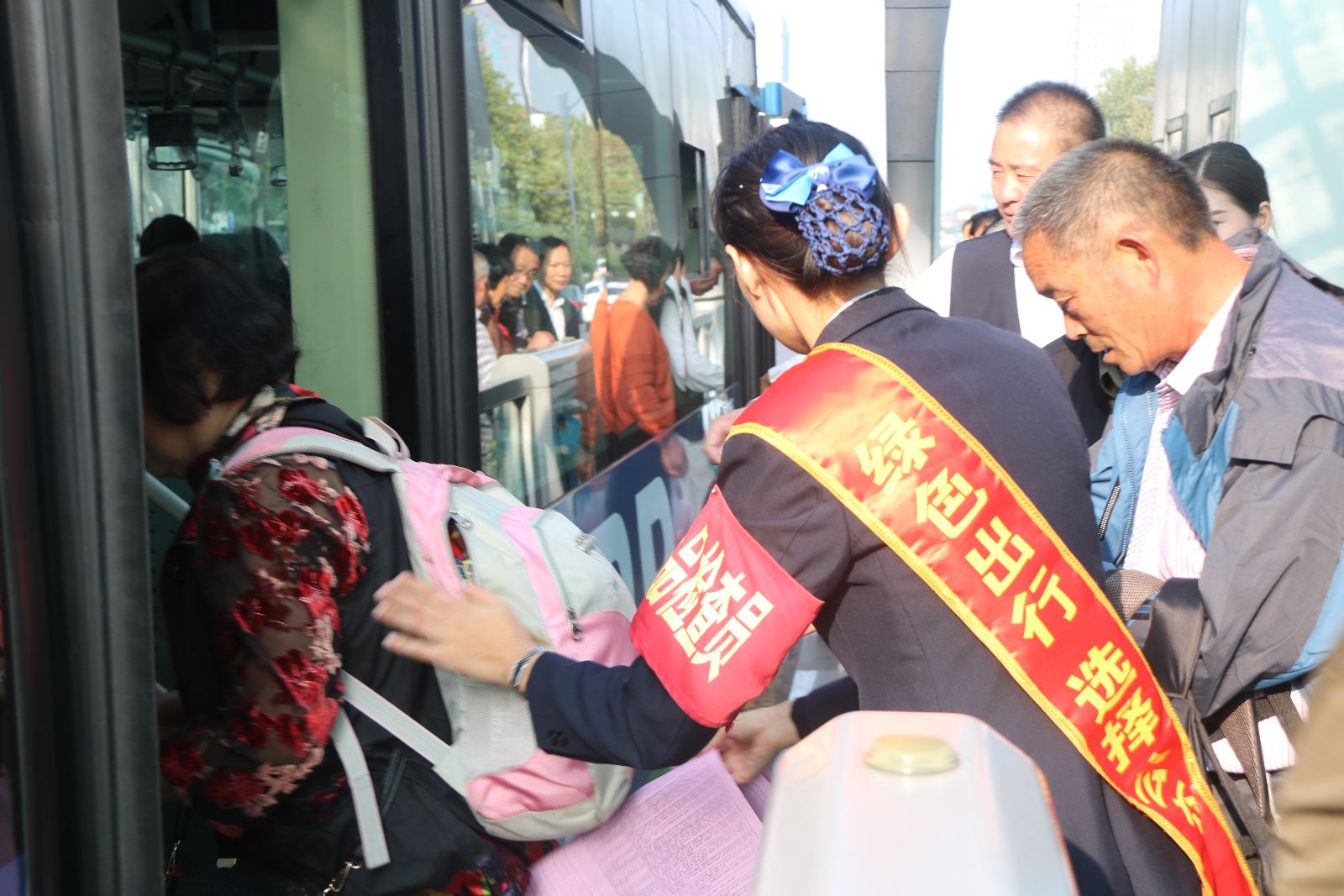 來源:快速公司 作者:周健 公交快速公司結合安全工作實際,公司工會和安全科聯合開展了“老年乘客乘坐BRT注意事項”主題宣傳活動,制作了專題展板,以實際行動表達對港城老年乘客的關心和祝福。 10月18日下午,工會及安管人員共8人走進BRT龍河廣場站,開展宣傳工作,給乘客講解老年乘客乘坐BRT注意事項,耐心回答老年乘客提出的乘車問題,收集他們對BRT的意見和建議。宣傳活動主要圍繞以下四點:一是進站、上車時老年卡、老年優惠卡專卡專用。二是在站臺候車時,車輛進站,站臺安全門和車門同時打開后,注意認清車次后再上車,防止被車門或安全門夾住;在上車時特別注意腳下,防止踏空摔倒;上車時最好選擇從前門上,這樣駕駛員會看到老年乘客上車,會給予特別關注。三是上車后,快速找到空座位做好;找座位盡量找平座位,最好不要上臺階;如無空座位,走到車廂中間后抓好扶手,特別是車輛啟動后,切忌在車廂中間來回走動;防止因車輛陡然急剎而摔倒;如有特殊需要,可告知駕駛員,尋求駕駛員幫助。四是即將到站時,注意提前做好準備,待車輛停穩后下車;切忌在車輛即將關門時“沖”到門口下車。 隨著公交線網的不斷擴大,選擇公交車出行的市民越來越多,老年乘客的比例也在不斷增加。敬老愛老是傳統美德,讓老年乘客方便、安全的出行,是我們公交人對老年人實實在在的關愛。