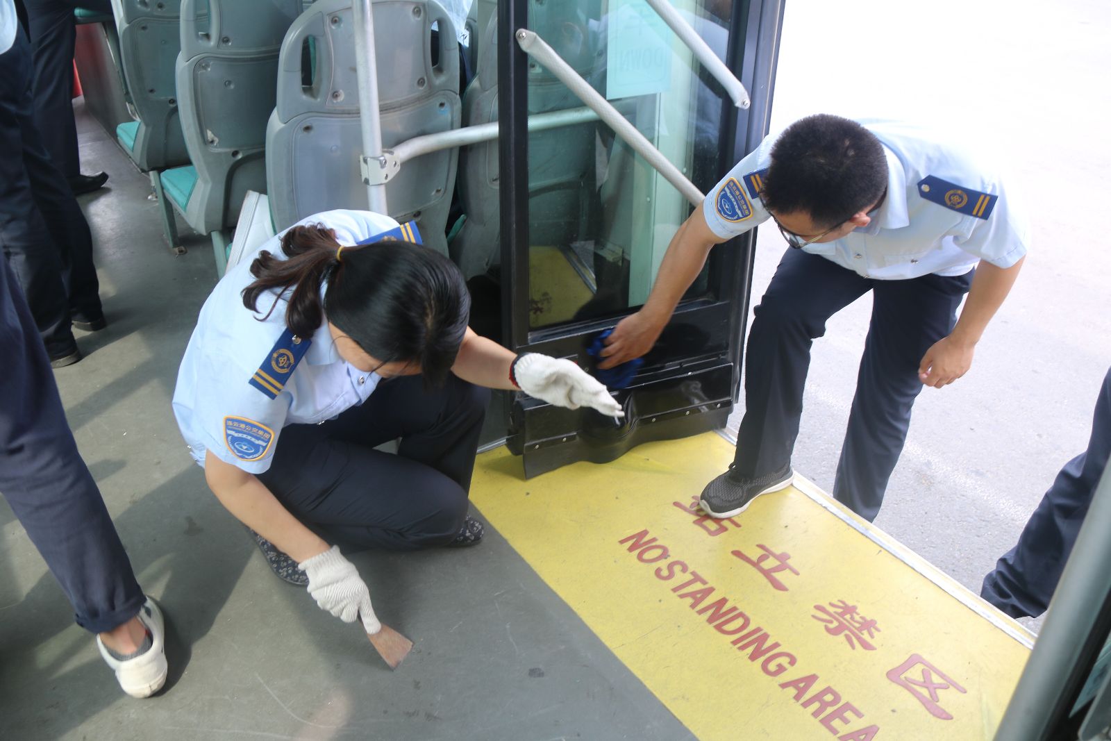 公交快速公司黨支部根據(jù)上級黨委“關于組織開展紀念建黨96周年系列活動”的文件要求。為增強黨員服務意識、改進服務作風、提高服務水平,踐行黨員“微服務”。6月30日下午,公交快速公司黨支部組織20名黨員志愿者,在海州客運站集中開展B12線車車廂衛(wèi)生清掃清潔志愿服務活動,黨員們用海綿清洗裝飾板上的污垢,用鏟子鏟除車內(nèi)地板上的口香糖,擦洗車頂空調(diào)濾網(wǎng)處等等,不放過每一處衛(wèi)生死角,積極營造真抓實干的良好氛圍。