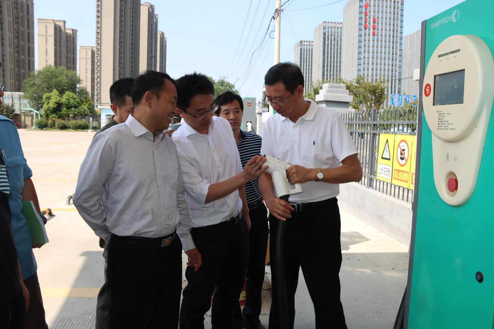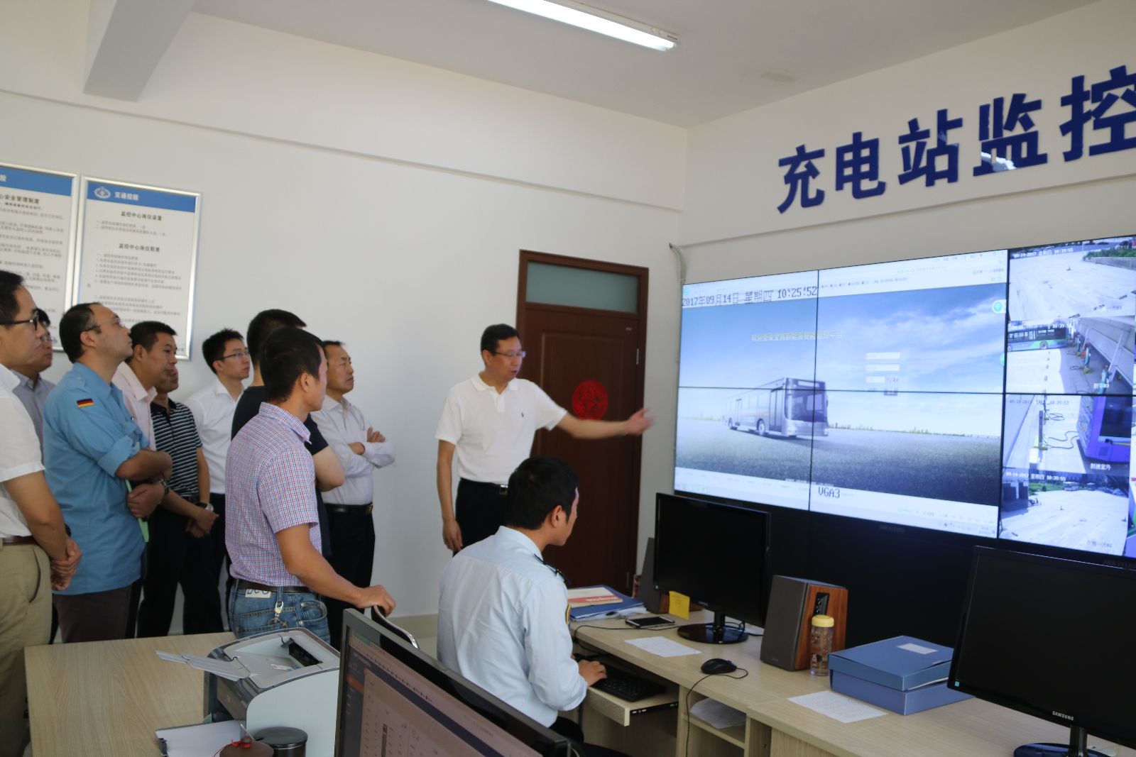 會上,袁軍首先介紹公司的車、樁運營情況及后期公司發展的目標。公司現有充電場站14座,包含快充電樁(弓)70套。充電效率上在全省范圍內位居前列。接著,該項目的技術顧問針對平臺的設計方案和技術措施、車輛和信息管理、車輛和樁的監管子平臺的功能等多方面進行了詳細介紹,專家們也對平臺的功能表示認可。期間,劉佃華邀請了專家們參觀明茂新能源公司的信息中心,對充電樁實時充電數據、安全監控平臺等情況進行介紹,并到新華充電站對充電樁、新能源車輛進行了實地考察,得到與會專家的一致認可。