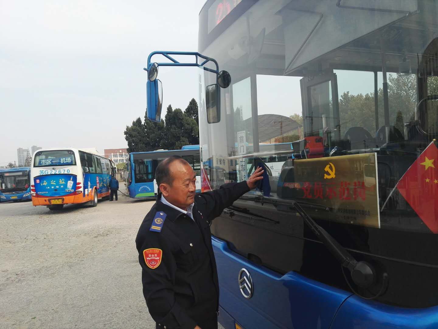 近日,公交海州公司為3名黨員駕駛員掛上公交集團授予的“黨員示范崗”銅牌。7路線黨員駕駛員李衛民接到新的“黨員示范崗”銅牌時,立即用抹布將其擦拭干凈,并擺放在車頭規定的位置。他深深地懂得,這不僅僅是一個銅牌,更是一份責任、一份擔當。對于他來說,被集團授予 “黨員示范崗”既是榮譽也是鞭策,因為身邊的同事都在看著他,他服務的廣大乘客也在看著他,他必須要將一名黨員承諾,全部轉化為提升公交服務品質、打造優秀公交形象的實際行動,做到熱情服務,吃苦在前,享受在后,無私奉獻,讓黨徽的光芒照耀車廂,將愛心和暖流傳遞給每一位乘客。同時掛牌的24路線黨員楊海軍和25路線劉軍也表示:“公交車每天要迎送數以萬計的乘客,我們把每位乘客當成親人,才能得到乘客的認可,我們要讓群眾從身邊一個個鮮活的黨員身上看到黨的先進性,感受到黨的溫暖”。
