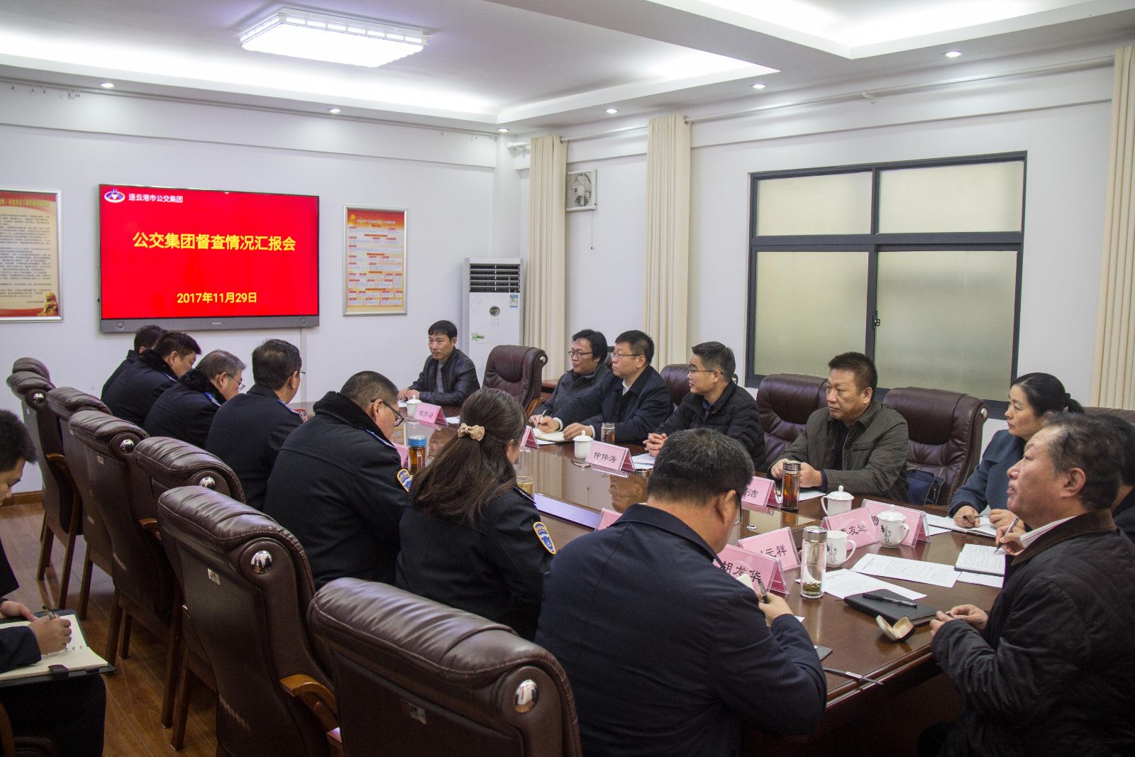 為全面貫徹中國共產黨第十九次全國代表大會精神,全力沖刺全年目標任務,11月29日上午,交通控股集團黨委書記、董事長劉永能,總經理、黨委副書記、副董事長仲偉濤,副總經理陳修習,紀委書記趙潔、黨委副書記陳金師及相關部室負責人到公交集團對三季度經濟運行分析會貫徹落實情況進行督查,公交集團領導班子成員參加會議。