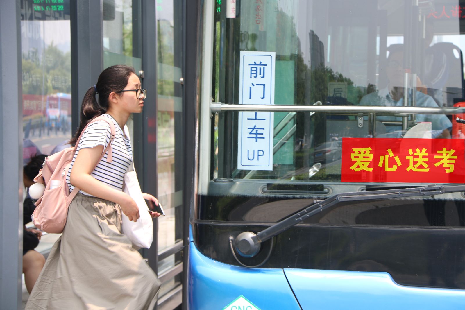 為確保“愛心送考”活動順利進行,連云港市公交集團制定了詳細的愛心送考保障方案,在運營服務、安全保障、應急措施等多方面做好準備,充分利用智能調度系統精準調配經過高考考場的運營車輛,加密通往各考場公交車輛的運營班次,減少考生候車時間。同時,對經過考場路線的駕駛員再三要求要安全、規范行車,禁止疲勞駕駛,車輛運營前做好安全檢查,不讓車輛“帶病運營”。參加活動的公交車輛上統一張貼了“愛心送考”標識,并在車內準備了礦泉水、風油精、十滴水、仁丹、碘伏等應急防暑藥品供考生無償使用。
