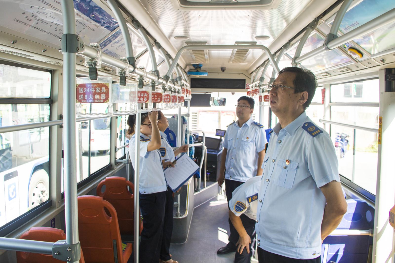 劉佃華一行深入黨校、海州客運站、香溢、華威等公交場站,對車廂內(nèi)的衛(wèi)生情況、創(chuàng)文宣傳廣告張貼情況、各場站辦公場所的衛(wèi)生情況、創(chuàng)文氛圍進(jìn)行細(xì)致檢查。通過檢查,劉佃華指出:雖然整體創(chuàng)文、衛(wèi)生情況良好,但辦公場所在衛(wèi)生死角方面清理不到位,各權(quán)屬單位要嚴(yán)格對照創(chuàng)文標(biāo)準(zhǔn),明確創(chuàng)文工作要求,要重點在環(huán)境衛(wèi)生、服務(wù)水平和創(chuàng)文公益廣告宣傳氛圍等方面下功夫,查漏補(bǔ)缺,認(rèn)真開展自查自糾,確保創(chuàng)文工作落到實處、取得實效。