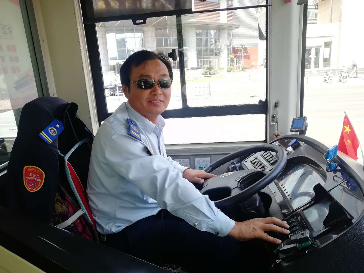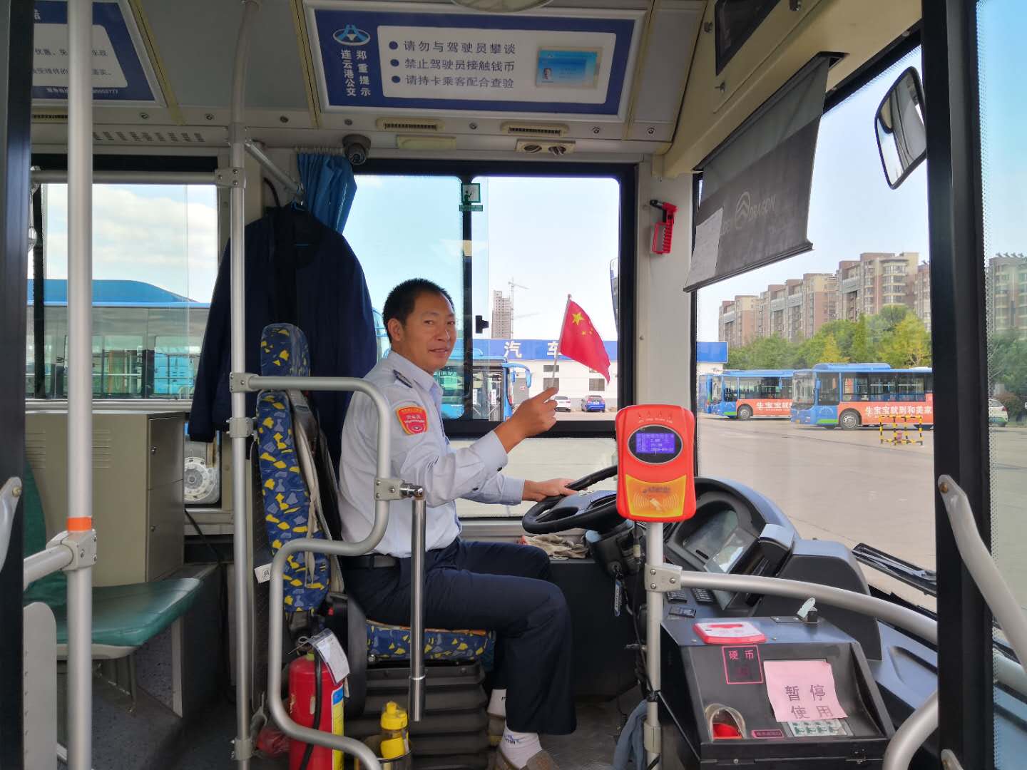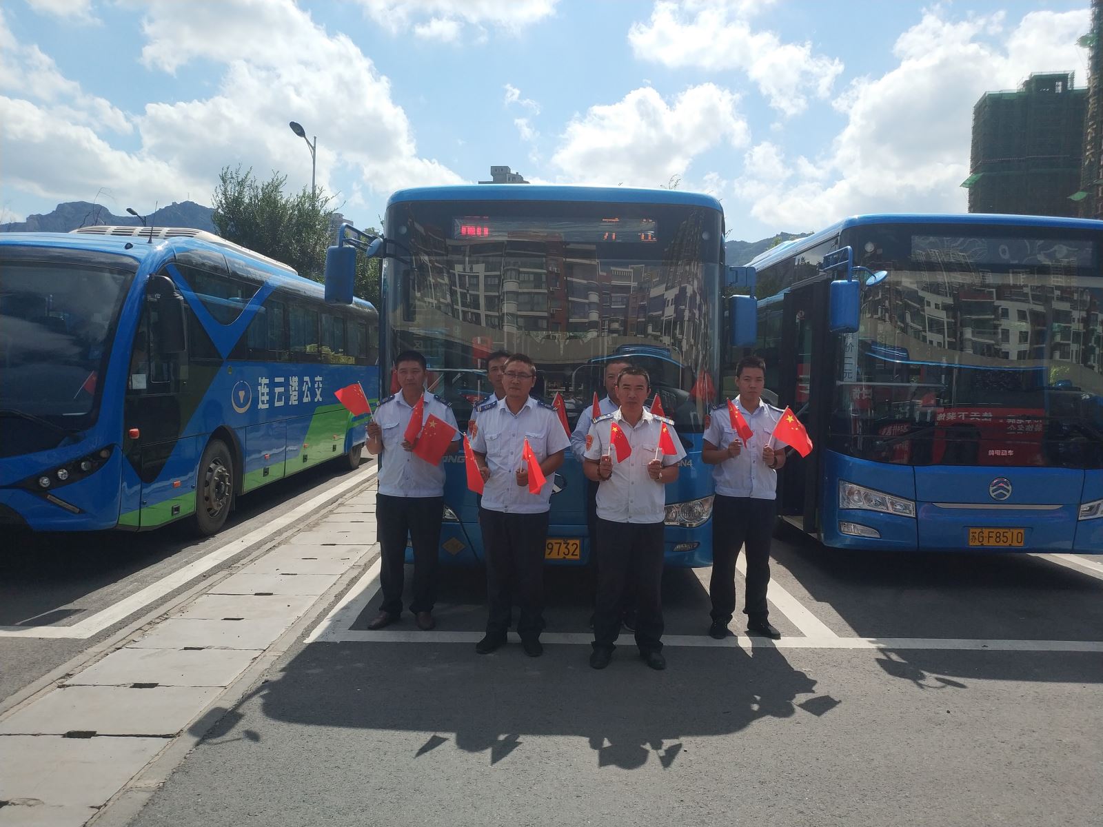 和國旗合個影,公交集團獻禮祖國69周年華誕