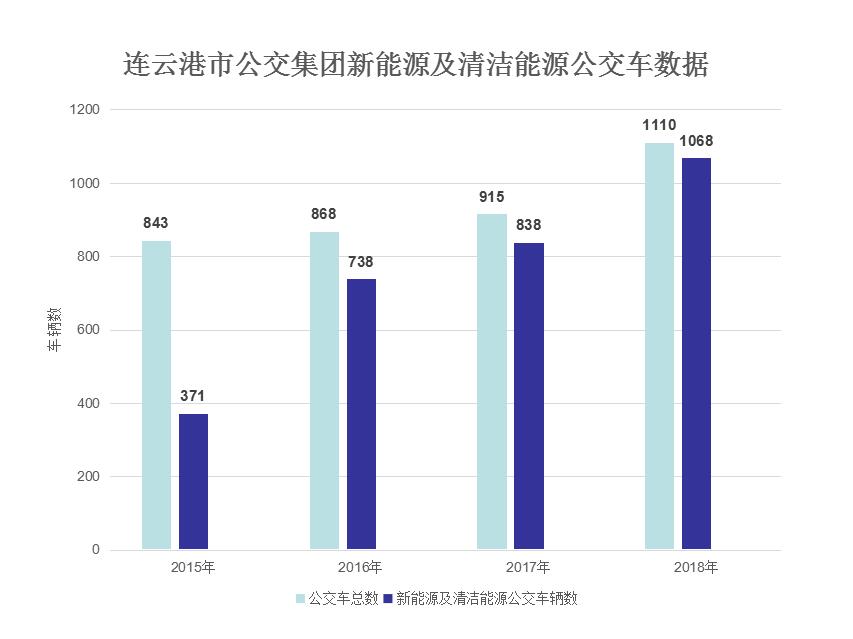 2015年起,連云港市交通控股集團(tuán)公交集團(tuán)加快車輛更新步伐,先后購(gòu)入了1068輛環(huán)保公交車(清潔能源公交車371輛,新能源純電動(dòng)公交車697輛),淘汰下線黃標(biāo)車輛566臺(tái),年替代柴油量15988噸,減少二氧化碳排放4.86萬(wàn)噸,節(jié)能減排效果明顯,新能源以及清潔能源公交車輛占比居全省之首。