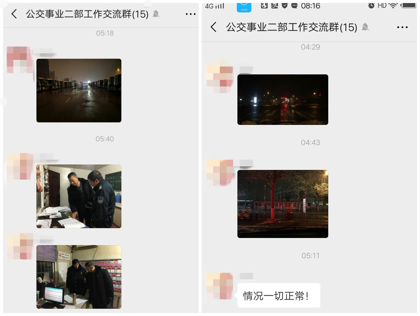 公司提前進入臨戰狀態,全面實行24小時值班、倒班制度,各相關負責人明確責任分工,做到快速反應、有效應對。各領導干部、管理人員、調度員、駕駛員均提前到崗,幫助清掃積雪、鏟除積冰,保證公交首班車準點發車。經過全員的共同努力,首班車輛全部準點發出,保障了線路的有序運營。