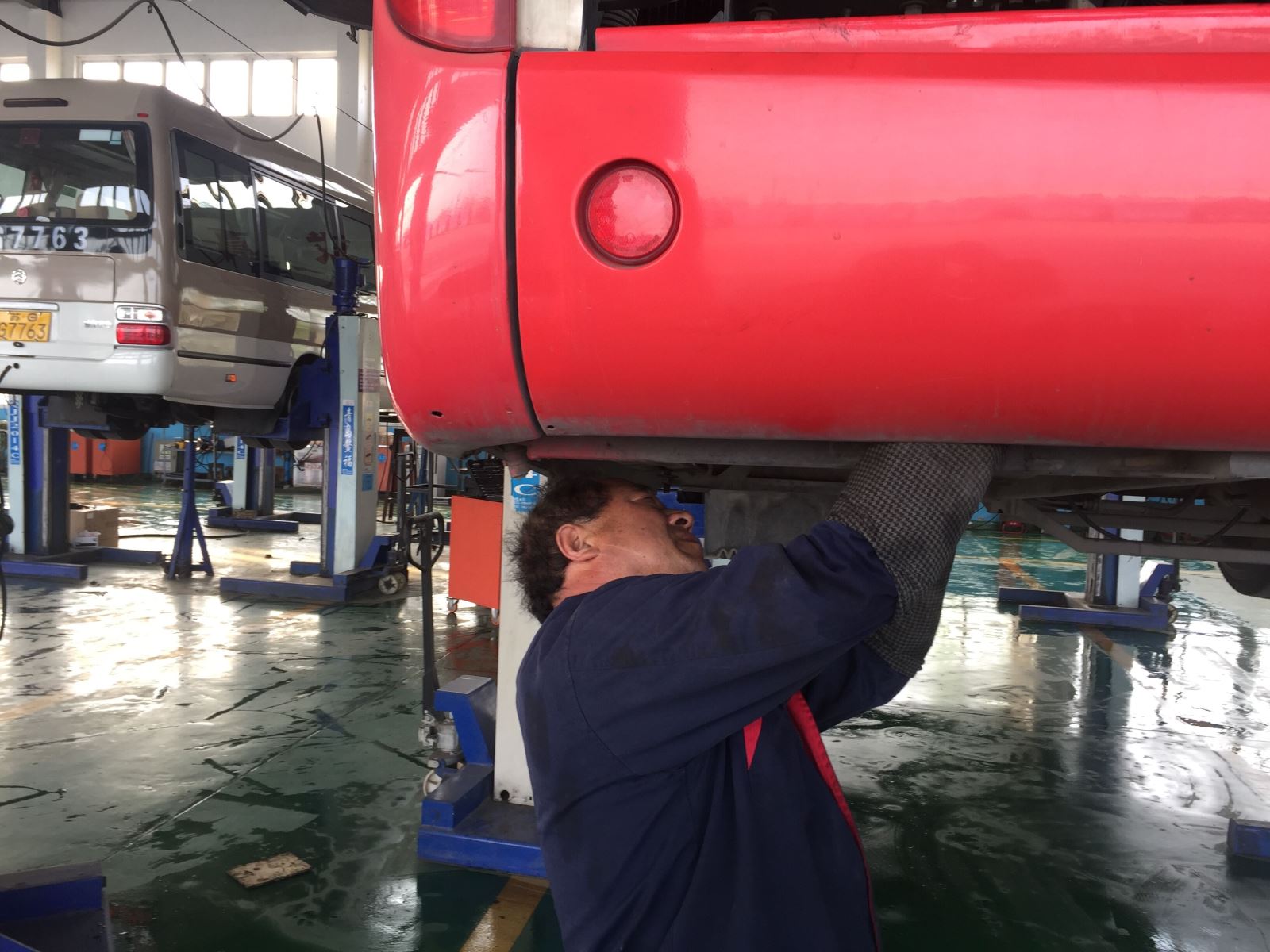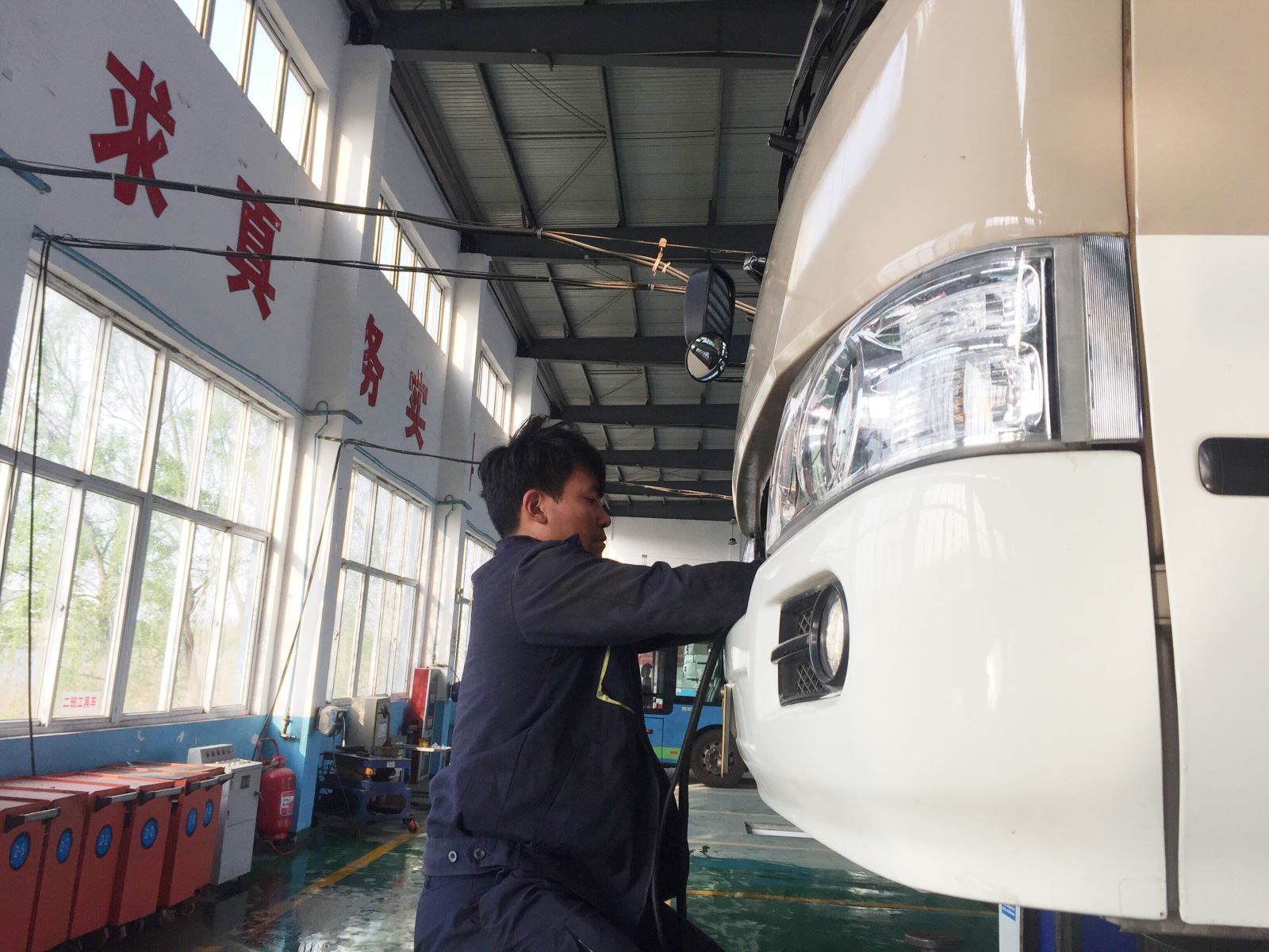 維修人員隨時待命,全天駐站,做好車輛后勤維修保障工作。