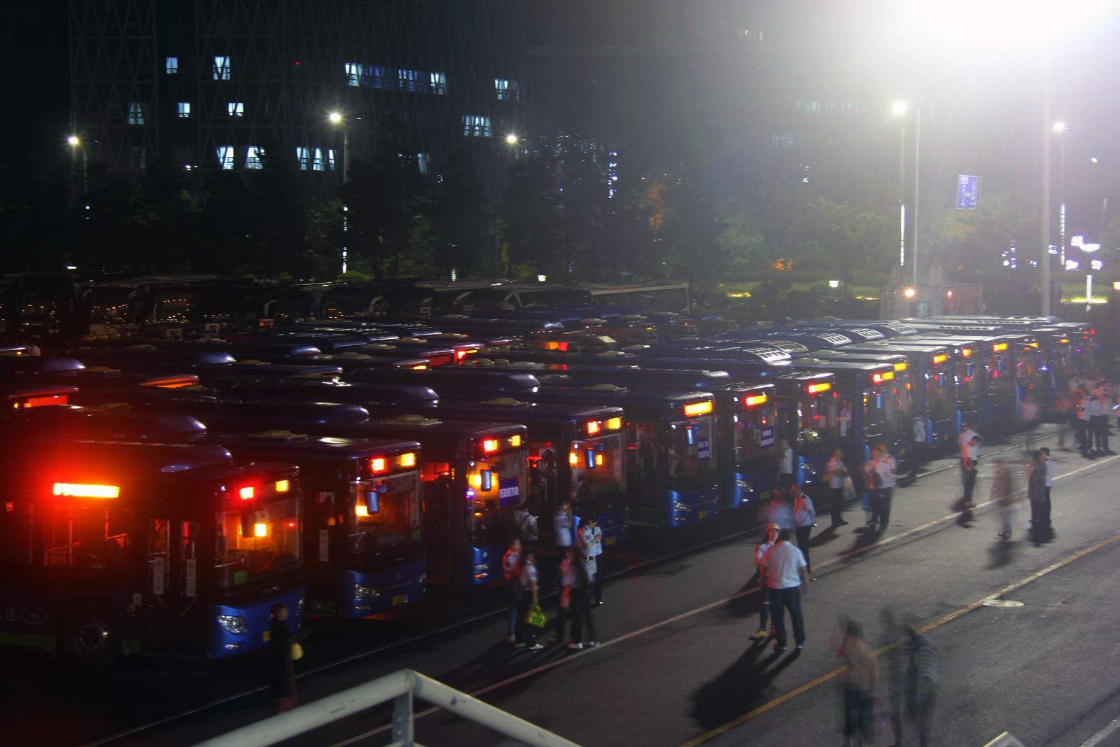 演唱會散場后,公交集團投入50臺運力在體育中心東門停車場等候,結合客流出行需求,分別開通了途經市區解放路、蒼梧路、海連路、朝陽路、港城大道等主干道的5條直通車,同時對BRT一號線進行了班次加密。集團領導班子成員、機關各部門、權屬單位主要負責人一同到達現場,共同參與現場觀眾的輸送工作,確保2019“連云港之夏”交通運輸保障工作的圓滿完成。經統計,演唱會散場后公交集團現場疏散客流共約2045人。