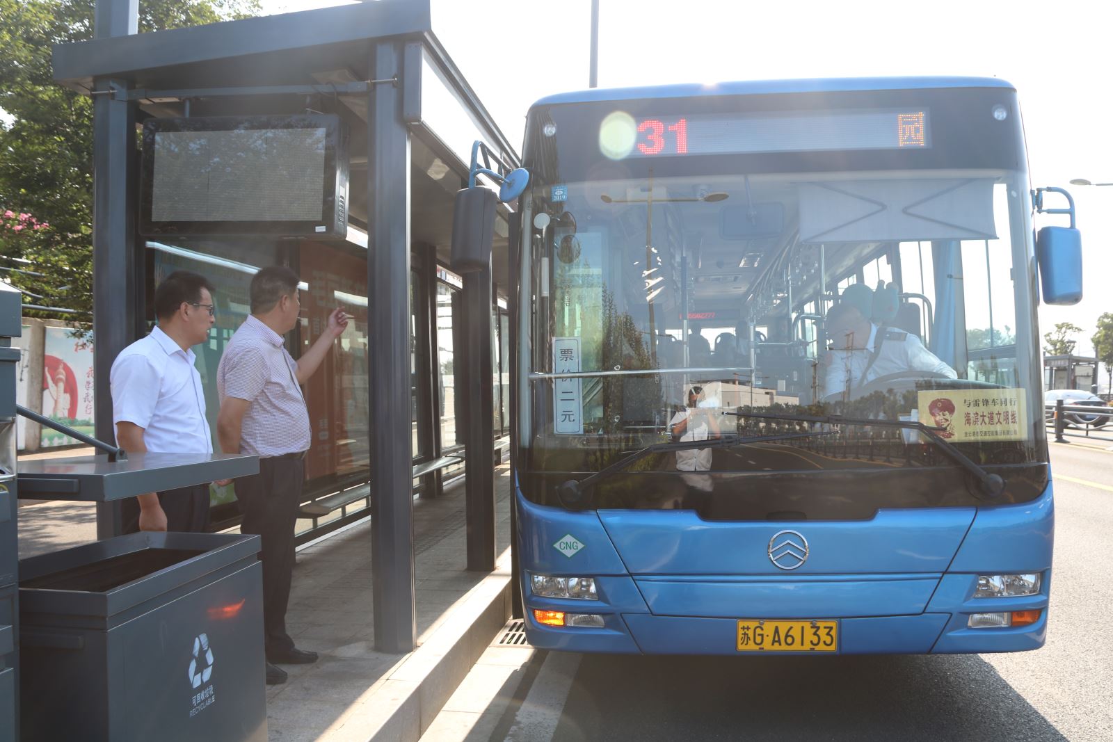 為確保創(chuàng)文工作順利開展,7月10日,公交集團(tuán)黨委書記、總經(jīng)理周文君及領(lǐng)導(dǎo)班子成員上路上線對海州客運(yùn)站、連云古鎮(zhèn)等線路開展創(chuàng)文檢查工作,檢查內(nèi)容包括:場站衛(wèi)生、車容車貌、車內(nèi)安全設(shè)施完善情況、文明宣傳標(biāo)識張貼是否到位、站臺衛(wèi)生、駕駛員服務(wù)規(guī)范等。