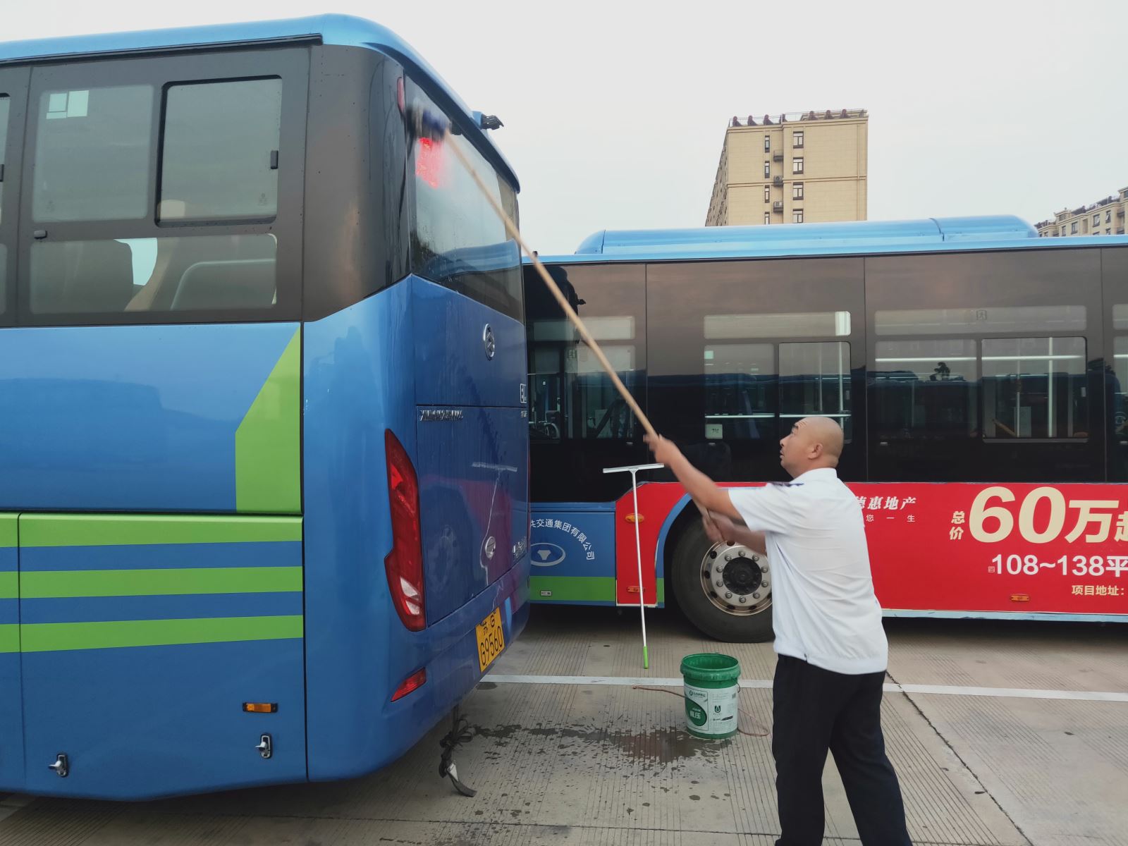 夏季炎熱,經過一整天的暴曬,路上的灰塵全都吸附在公交車的車身上,車廂里還有粗心的乘客落下的背包、手機亦或是錢包,駕駛員師傅們會從里到外清理車輛衛生,不僅僅是創文工作要求,更想讓乘客擁有一個舒適的乘車環境。對了,把東西落在公交車的乘客也不用擔心,只要駕駛員撿到了你丟失的東西,一定會妥善保管,等你前來認領