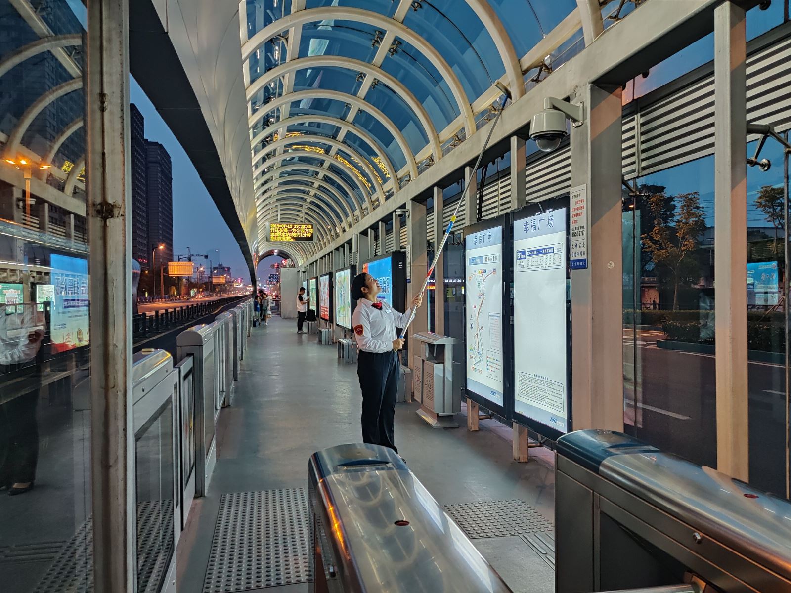 這個點,許多人已經吃完了晚飯,有些甚至已經和家人散完步準備洗漱入睡,我們的站務員們還堅守在崗位上,送完常規線的最后一班乘客,她們還會迎來夜班線的第一班乘客。別看她們外表柔弱,關鍵時刻,她們也是為乘客化解過矛盾,給危在旦夕的乘客做出最快急救措施的人,她們是港城公交人里的鏗鏘玫瑰。