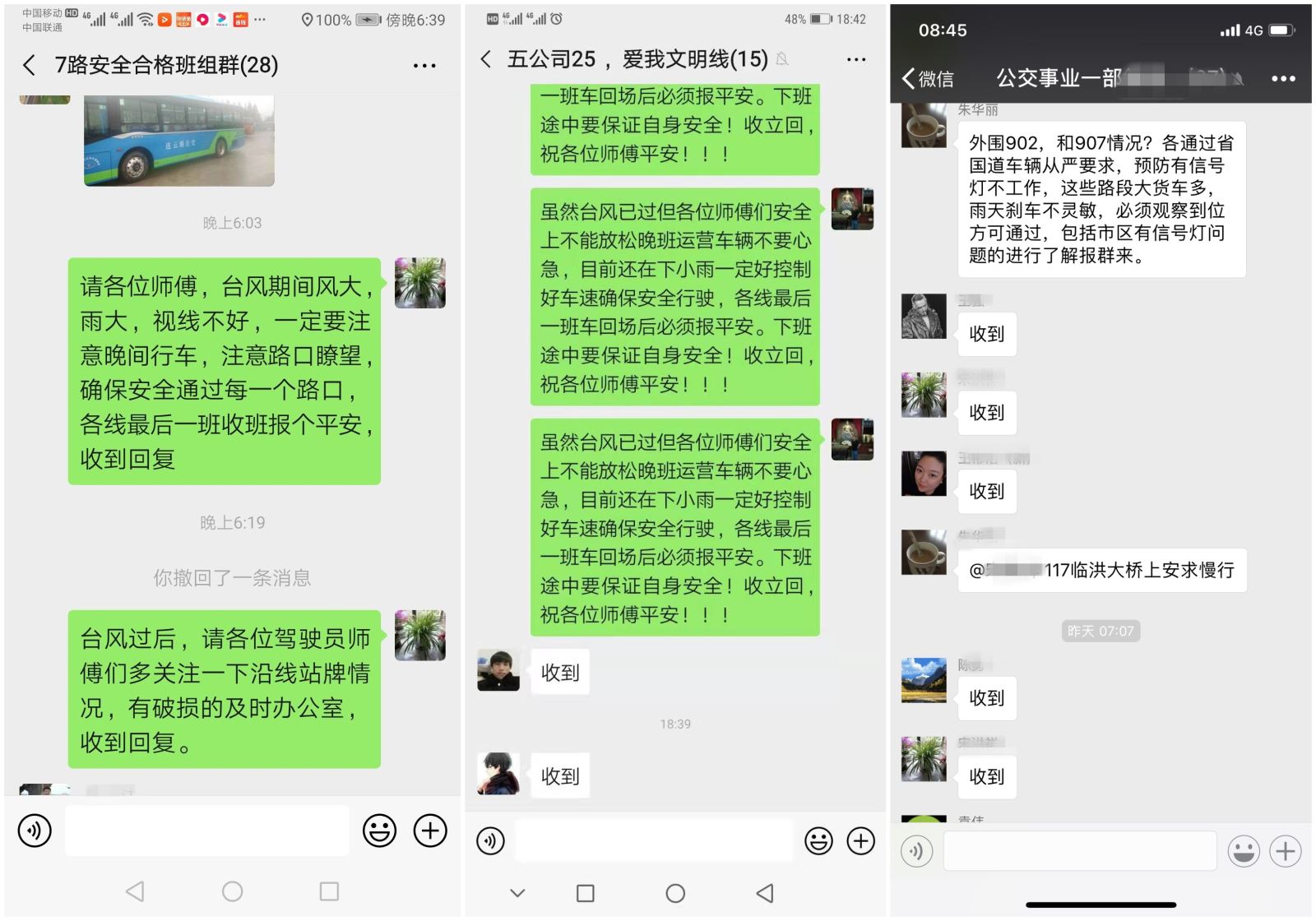 8月10日起,公交集團各事業部按照集團文件精神,做好了防臺風專項部署工作,安管人員實行24小時輪流值班制度,連夜布點防控10處;11日凌晨4時起,臺風登陸后,全體駕駛員、調度員、安管人員提前到達崗位,做好發車前面對面交代、車輛安全檢查等準備工作,保證車輛準點發出。各事業部還派出由管理人員組成勘路小分隊分別到23條途經涵洞、易積水路段現場查看情況,狂風暴雨濕透了他們的衣裳,卻沒有阻擋他們前進的腳步。經判斷,道路積水深度達30厘米及以上的線路,勘路小分隊的成員們立即聯系調度人員采取車輛繞道或減班、停班運營、調配應急物資等方式做好現場指揮應急工作,確保臺風天氣市民乘客安全出行。