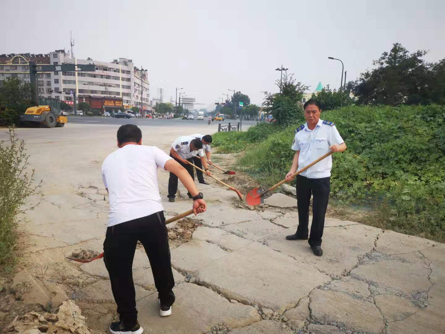 江化北路停車場內每天出入公交車輛達數百臺次,近日,由于天氣連續高溫和暴雨的沖刷,導致場站出口處部分路面出現坑槽、沉陷等狀況,對出入公交車輛底盤造成嚴重安全隱患,也給上下班員工的通行帶來不便。公交集團經營發展事業部佳連分公司經理武傳德立刻行動,召集管理人員拿起鐵鍬扥工具修補破損路面,大家將泥土和沙石填置到低洼損壞的路坑中,為提高效率,有的同志甚至摒棄工具,徒手搬運磚石和石塊,不到1小時,坑洼的路面被修復平整。