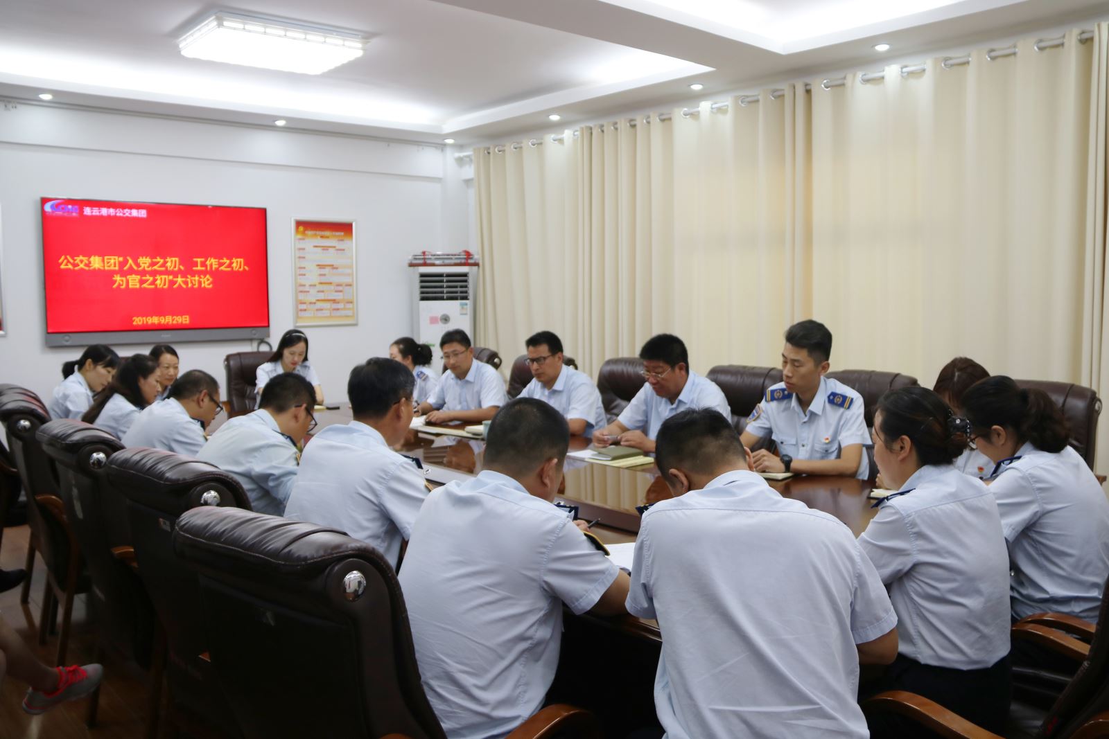 9月29日上午,公交集團機關黨支部開展“入黨之初、工作之初、為官之初”集中研討會,機關黨總支書記劉永善主持會議,機關全體黨員參加研討。