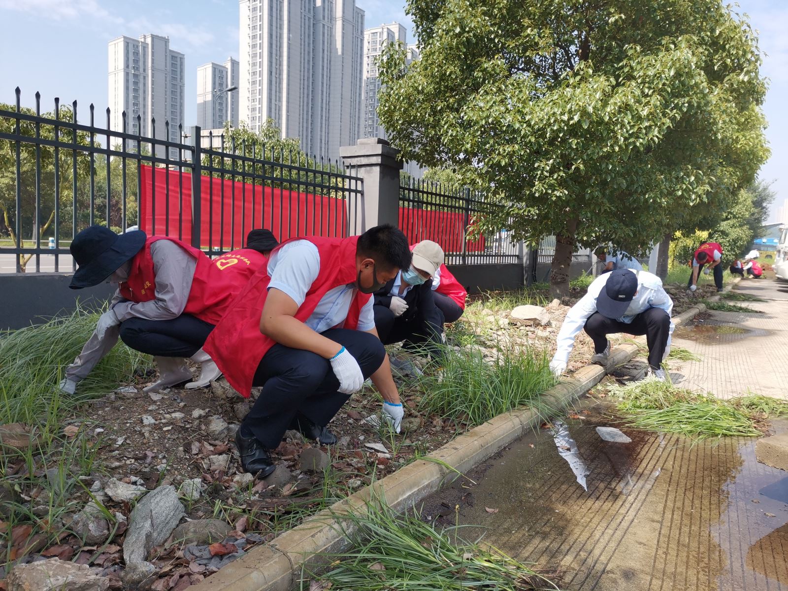 活動中,大家爭先恐后,搶在前,干在前,有的用鐵鏟鏟草,有的用手直接拔,有的用鐮刀割,有的往外清理……,雖然天氣不是太熱,但是大家干得汗流浹背,加之土地濕潤,蚊蟲較多,大家克服蚊蟲叮咬的困難,發(fā)揚(yáng)了不怕臟、不言苦與累的優(yōu)良作風(fēng)。經(jīng)過近三個小時的辛勤勞動,綠化帶的雜草、雜物不見了,呈現(xiàn)在大家眼前的是一個干凈整潔的環(huán)境。