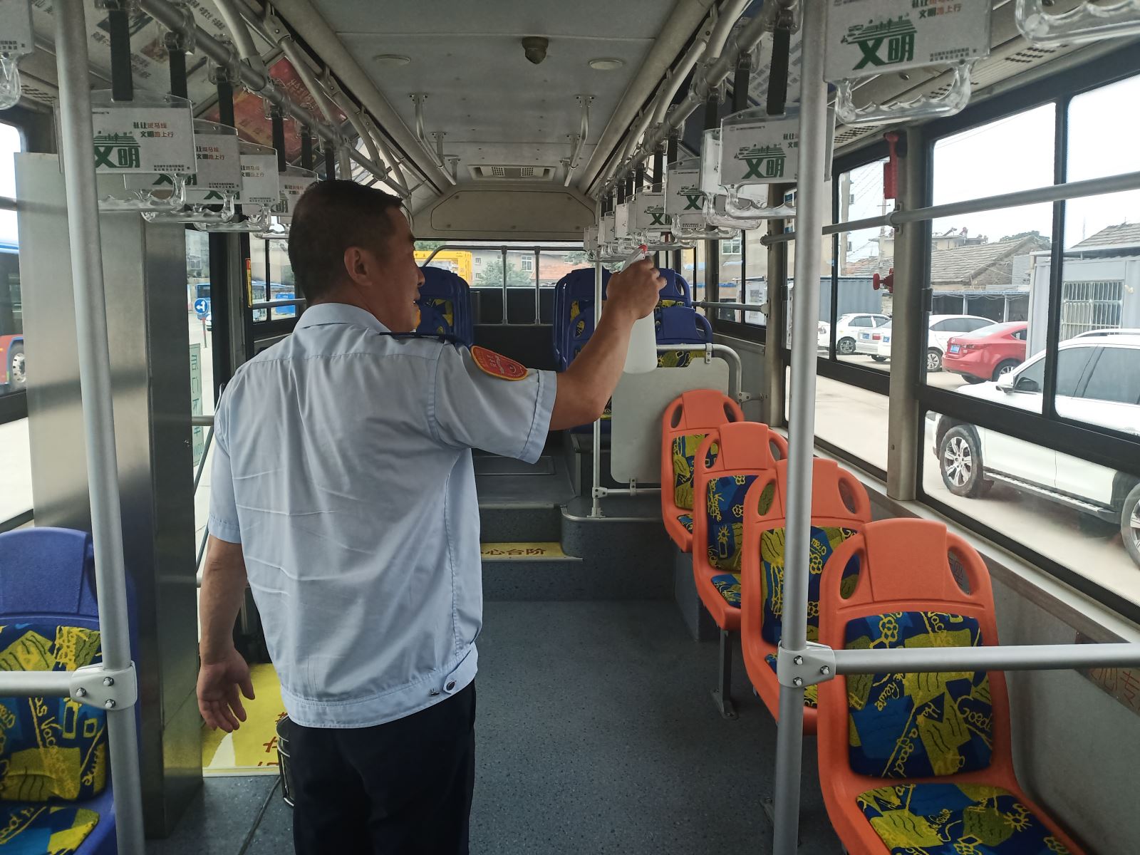 為了給乘客營(yíng)造一個(gè)干凈、健康的乘車環(huán)境,駕駛員在第一時(shí)間為愛(ài)車“清洗”,首先利用洗車機(jī)將車身外部清洗干凈,然后對(duì)車廂內(nèi)部進(jìn)行打掃,擦拭駕駛室內(nèi)的衛(wèi)生死角,拖地板、擦玻璃、座椅、扶手等。為確保疫情期間做好防控工作,還要對(duì)車內(nèi)進(jìn)行消毒,并打開(kāi)門(mén)窗通風(fēng)透氣。