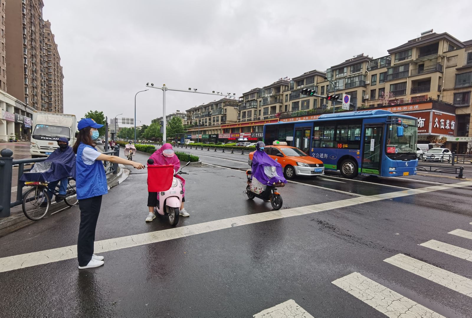 在為期一個(gè)月的志愿服務(wù)活動(dòng)中,夏季雨期頻繁,又恰逢7月22日至24日省創(chuàng)文檢查組來連督查,但是公交集團(tuán)志愿者們?cè)趷毫犹鞖庵校瑘?jiān)守崗位,勸導(dǎo)廣大市民文明出行,營造安全暢通、文明和諧的道路交通環(huán)境。